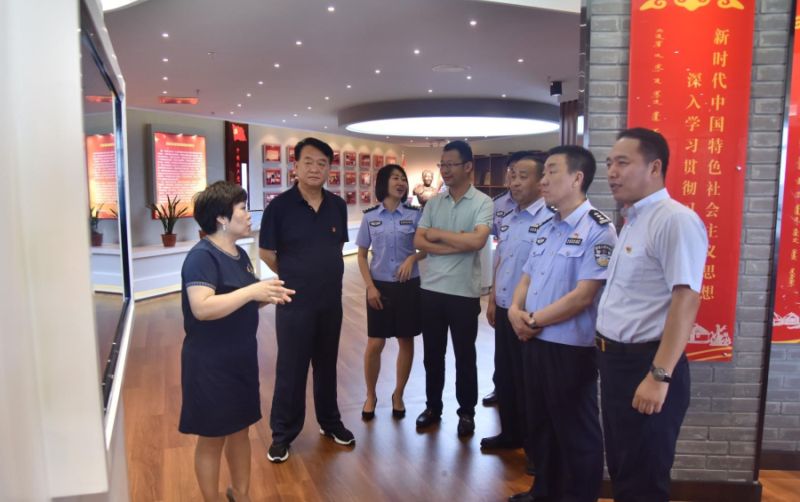 圖為呼和浩特出入境邊防檢查站領(lǐng)導(dǎo)一行參觀投資公司黨員活動(dòng)陣地