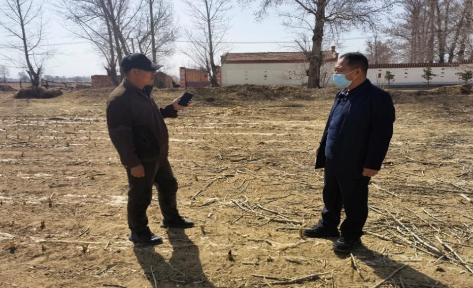 圖為包聯(lián)領(lǐng)導(dǎo)小組總指揮邱寬同志深入田間地頭調(diào)研了解包聯(lián)村基本情況(4月8日)