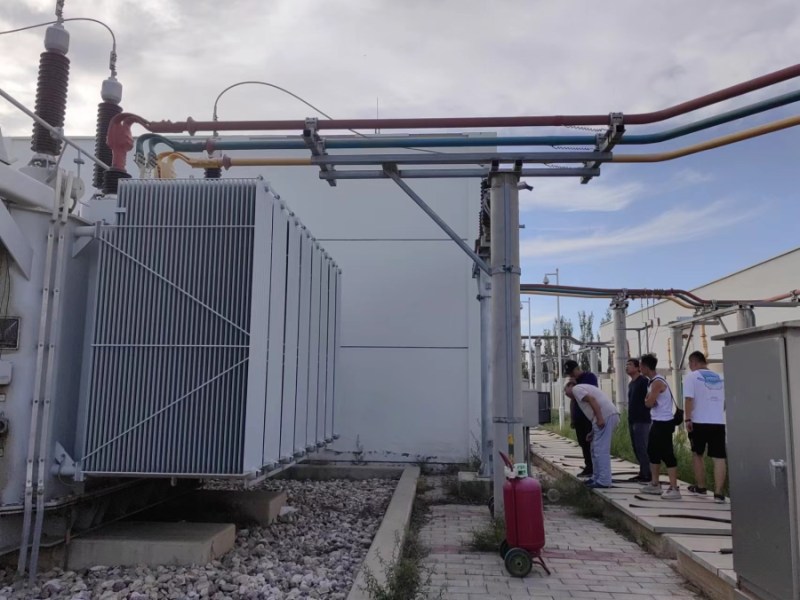圖為110KV變電站4號主變啟用調(diào)試現(xiàn)場