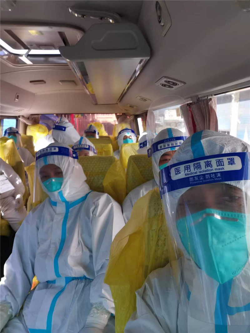 圖為集團(tuán)工作人員準(zhǔn)時(shí)在清晨六點(diǎn)前到達(dá)包聯(lián)村開展核酸采樣工作
