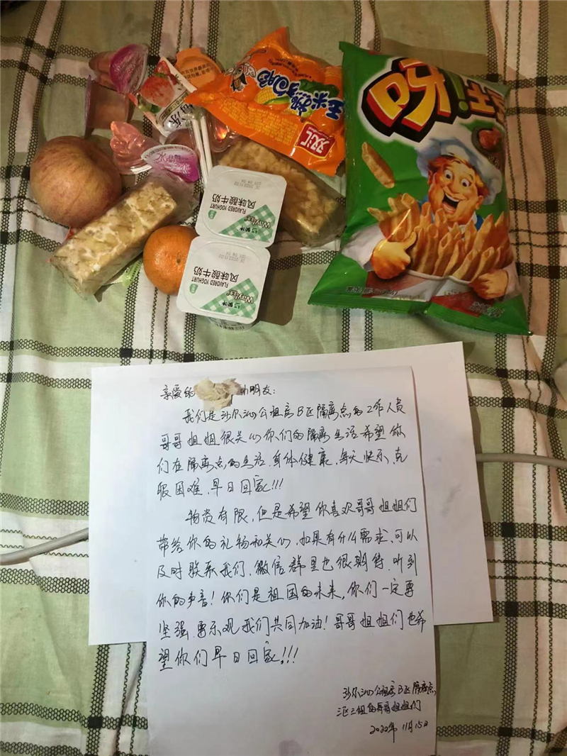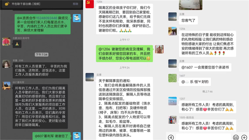 圖為公租房隔離點(diǎn)隔離人員感謝集團(tuán)工作人員的溫暖守護(hù)