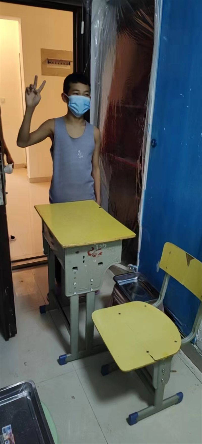 圖為集團(tuán)工作人員為隔離點(diǎn)需上網(wǎng)課的兒童配備了書桌椅子