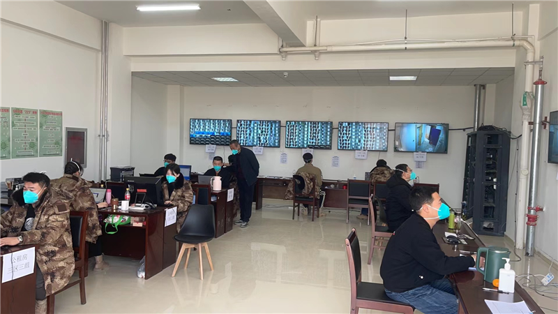 圖為視頻調(diào)度組工作人員晝夜盯守隔離區(qū)視頻監(jiān)控