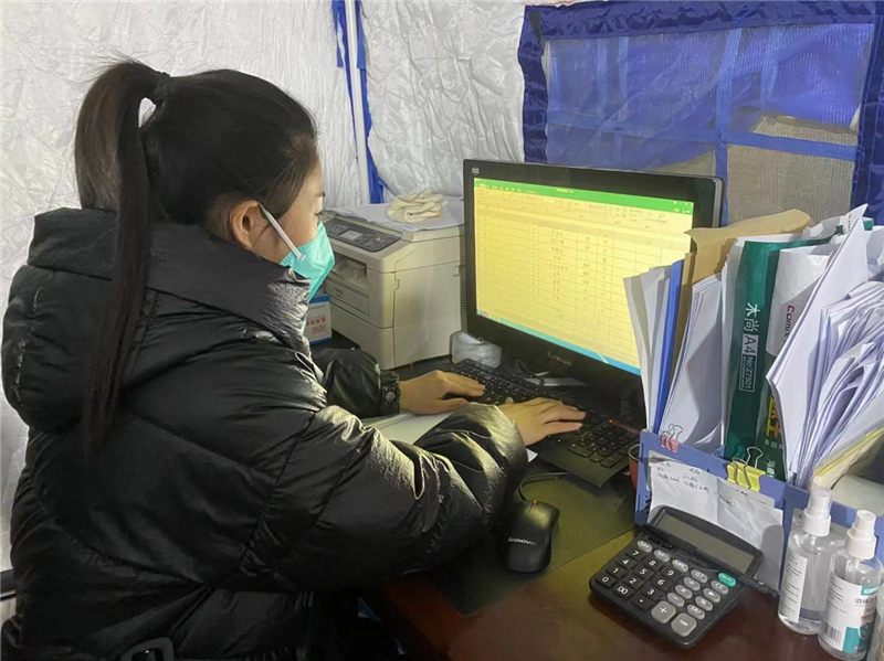 圖為集團(tuán)女職工們正在錄入隔離點(diǎn)人員信息和核酸檢測(cè)結(jié)果