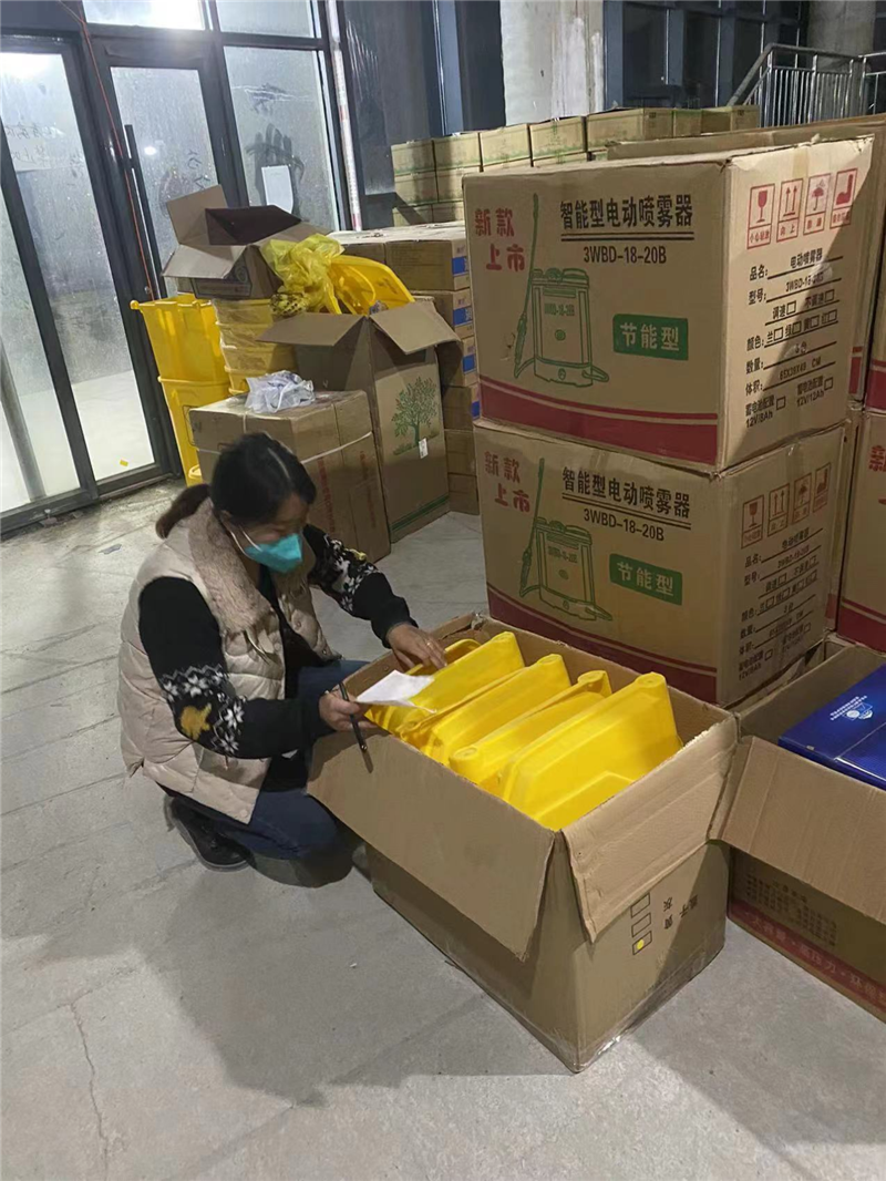 圖為集團(tuán)工作人員趙美艷在公租房隔離點(diǎn)物資組庫(kù)房統(tǒng)計(jì)出庫(kù)物資