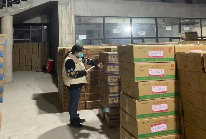圖為高娃盤(pán)點(diǎn)公租房隔離點(diǎn)的防疫生活物資