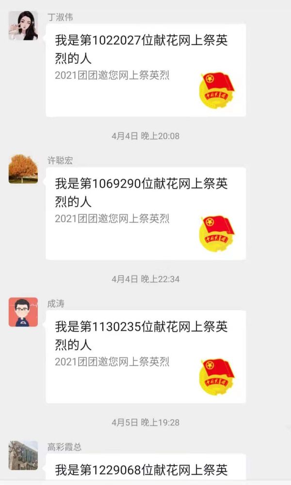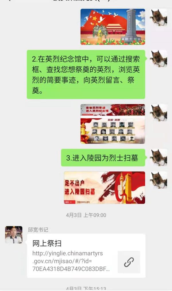圖為投資集團黨員群里通知清明期間網(wǎng)上祭奠英烈