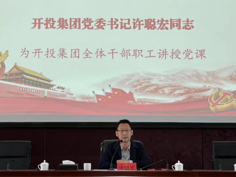 圖為開(kāi)投集團(tuán)黨委書(shū)記許聰宏為全體干部職工講授黨課