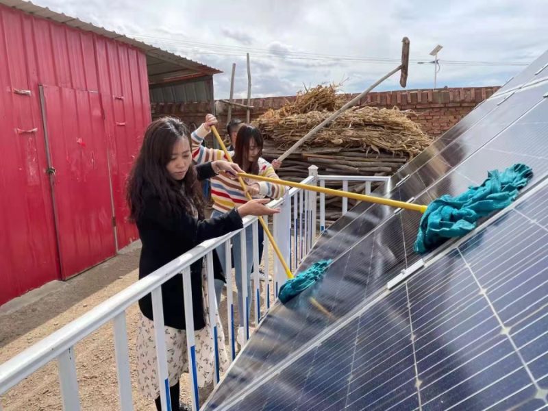 開投集團(tuán)機(jī)關(guān)黨支部43名黨員和9名積極分子按照4名同志包聯(lián)1戶的安排,對沙爾沁鎮(zhèn)26戶扶貧戶的農(nóng)村分布式光伏發(fā)電項(xiàng)目進(jìn)行維護(hù),并清洗光伏板。