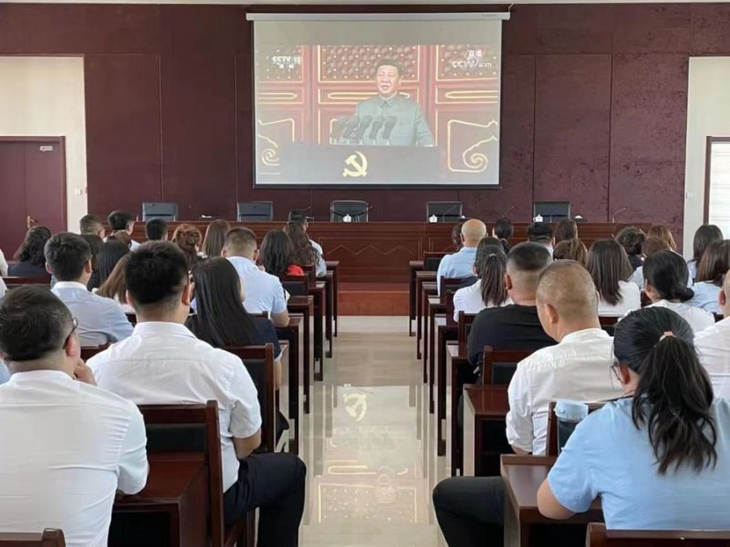 圖為開投集團(tuán)全體黨員干部職工集中觀看慶祝中國共產(chǎn)黨成立100周年大會(huì)現(xiàn)場直播